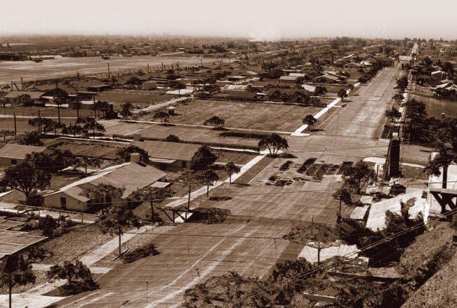 The camouflaged Douglas factory in Santa Monica, 1945.